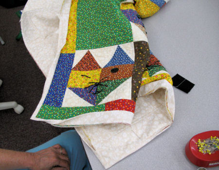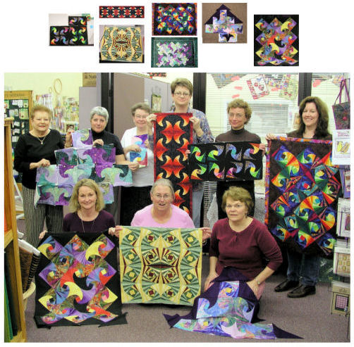 The borders will be totally finished at home, the quilting will be done, the binding put on -- and decisions will be made: On the wall? On the bed? For certain, treasured for a long time. Congratulations, to the students! Click on any of the following to see the image in a larger size.